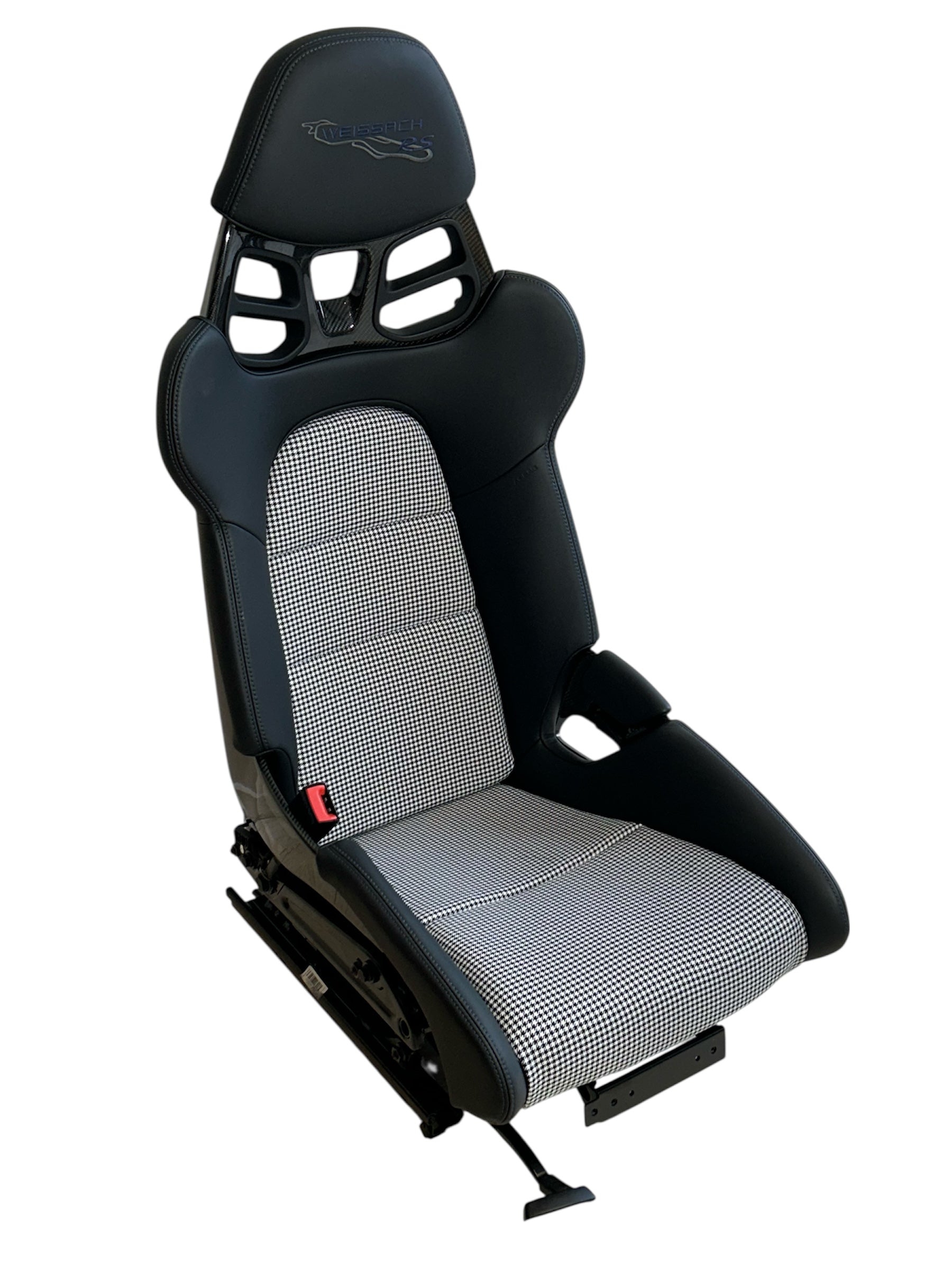 This bespoke houndstooth seat insert cover set is designed specifically for fixed Porsche 918 carbon bucket seats. The black and white Houndstooth Pepita design adds a touch of history in the linage of Porsche.
